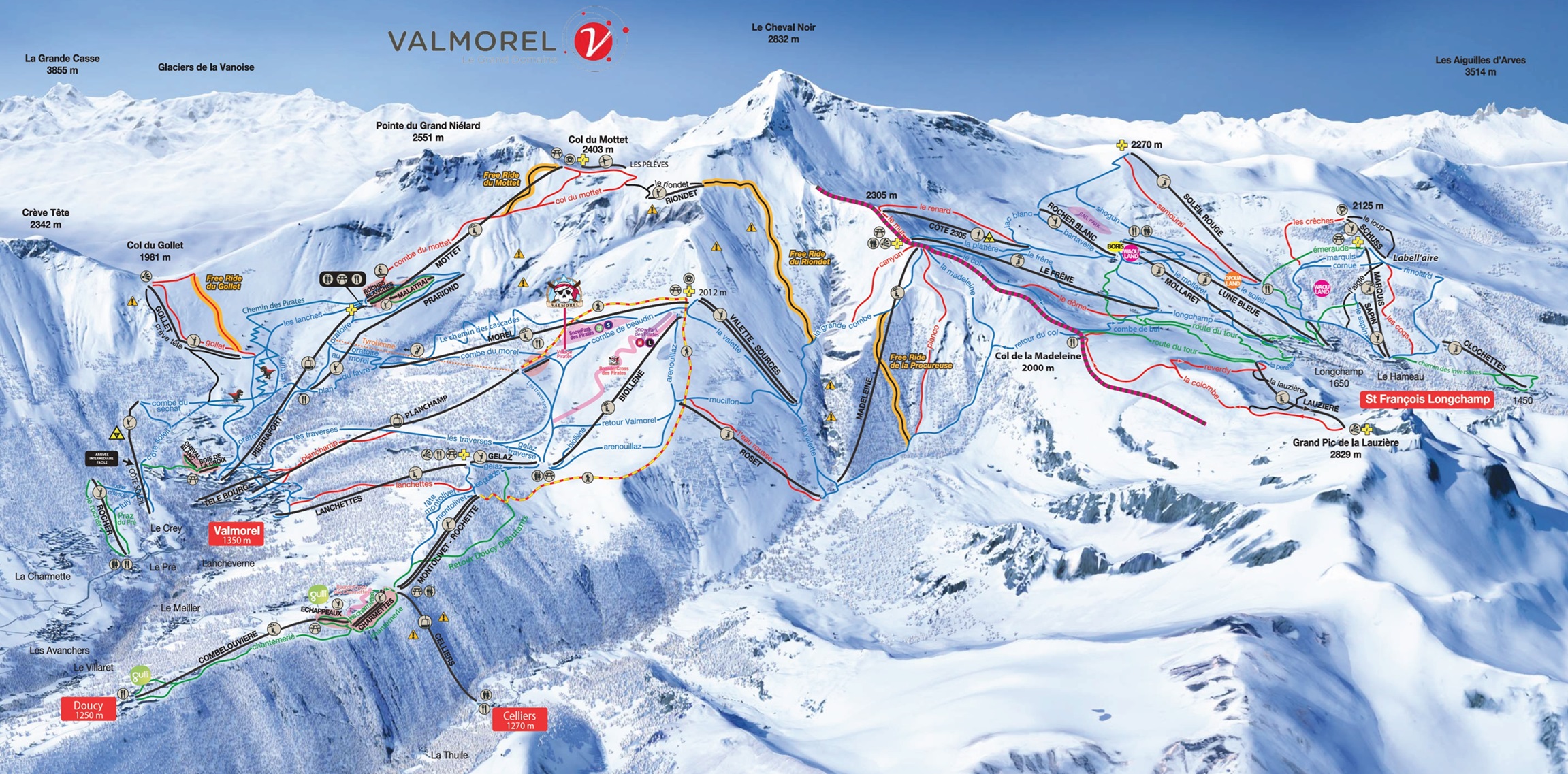 Whilst we slowly add to this overview, check out the Valmorel St-François-Longchamp Ski Trail Map below.
