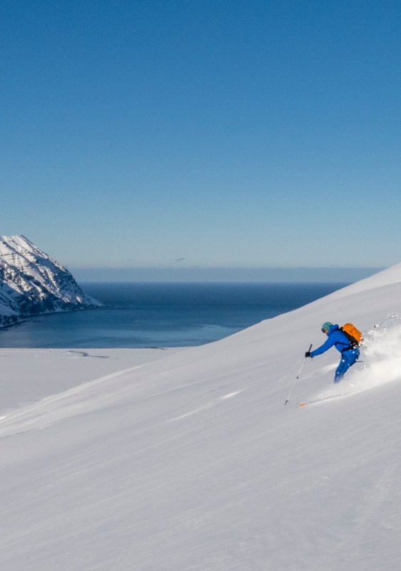 Experience ski touring at Iceland's fabled Troll Peninsula with an expert guide doing peak to ocean descents. Days of incredible backcountry powder skiing, hot springs, northern lights & sightseeing. Stay in a cozy lodge near the sea & amongst the mountains, plus spend the final night in Reykjavik.