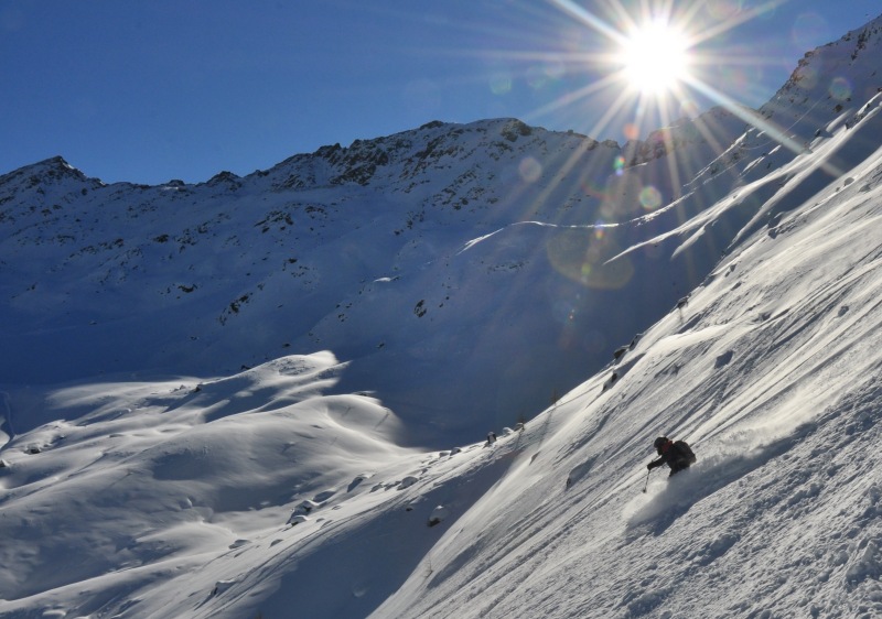 Ischgl is a resort in the west Tirol of Austria, on the border with Switzerland. Rather famous for parties, it is also rightly famous for its freeride skiing terrain (plus the most modern ski lifts in the Alps!). And it snows a lot here too, with the region close to some well-known powder magnets nearby in the Arlberg. Together with the Swiss duty-free zone of Samnaun, plus the smaller resorts of Galtür, Kappel and See, it forms one of the best ski areas in the Alps for a freeride camp.