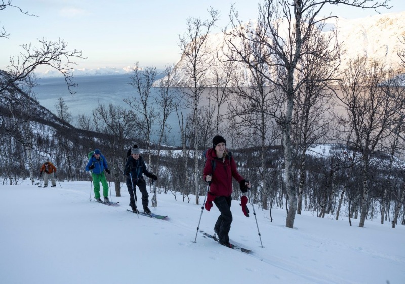 The Arctic Night trip is at Langfjordbotn which sits at the heart of a striking Arctic landscape in Finnmark, where deep fjords cut through broad valleys and peaks rise to nearly 900 metres (just over 2,952 feet). The surrounding mountains offer excellent ski touring and splitboarding opportunities for intermediate level and above.