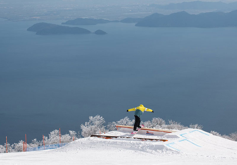 Biwako has a beginner terrain park as well as a small intermediate park that usually has various jib items and a big kicker, where it feels like you can jump out into Lake Biwa. It seems that a half pipe is no longer formed.
