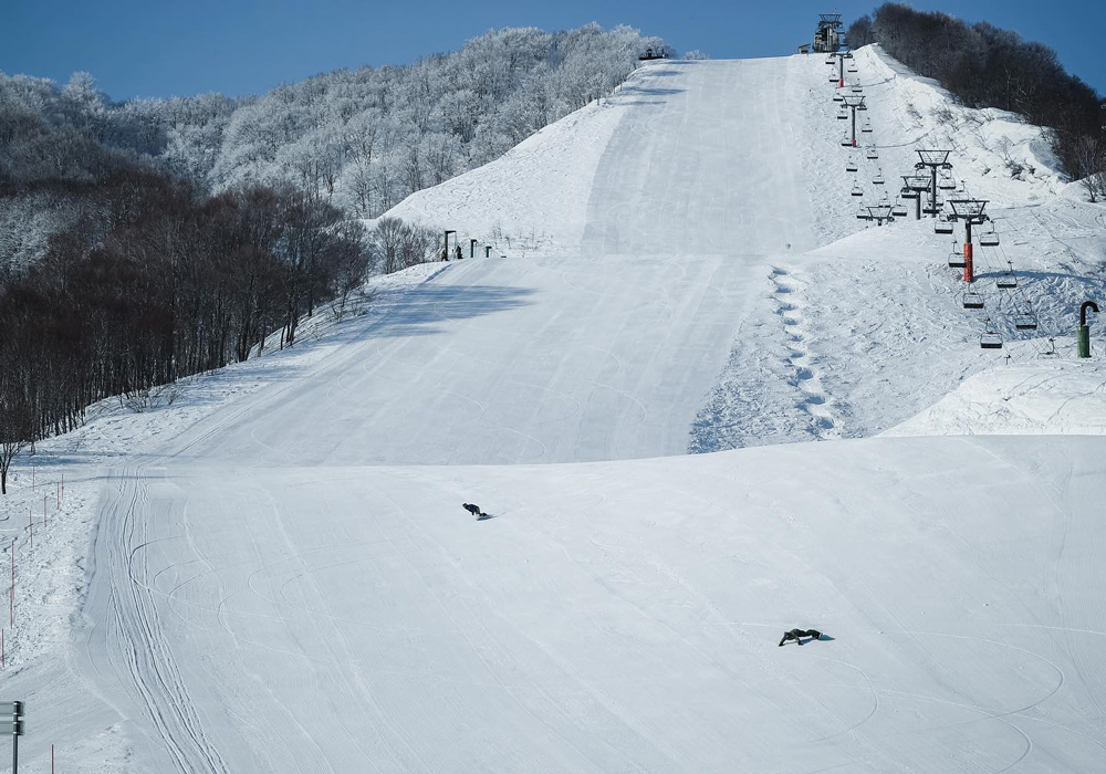 Ishiuchi Ski Resort is pretty good for intermediates of all levels. Low-end intermediates will enjoy the various mellow red runs, and there are also steeper red groomers. The resort usually grooms part of a couple of the black runs, and one hits a maximum of 35 degrees so it’s good for strong intermediates.